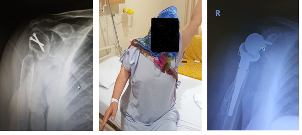 2. ameliyatından sonraki hali , protez ameliyatı öncesi sağ ve sol omuz , ameliyat sonrası görüntüleri
